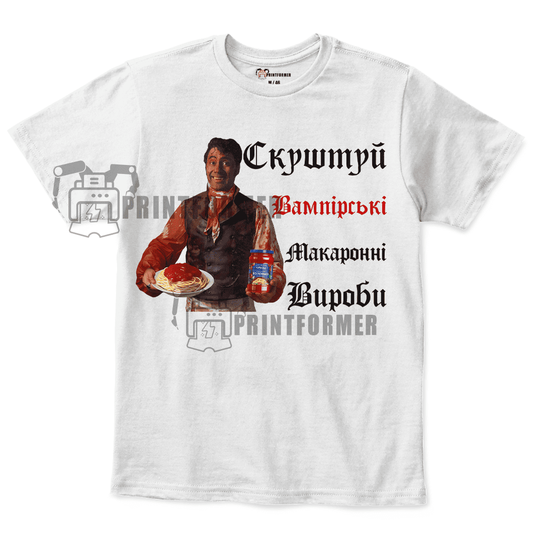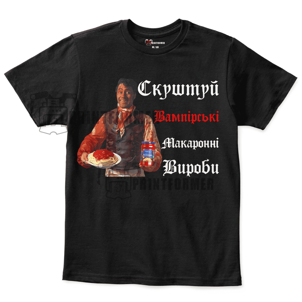 Футболка унісекс Що ми робимо у тінях – В`яго – Скуштуй Вампірські Макаронні Вироби